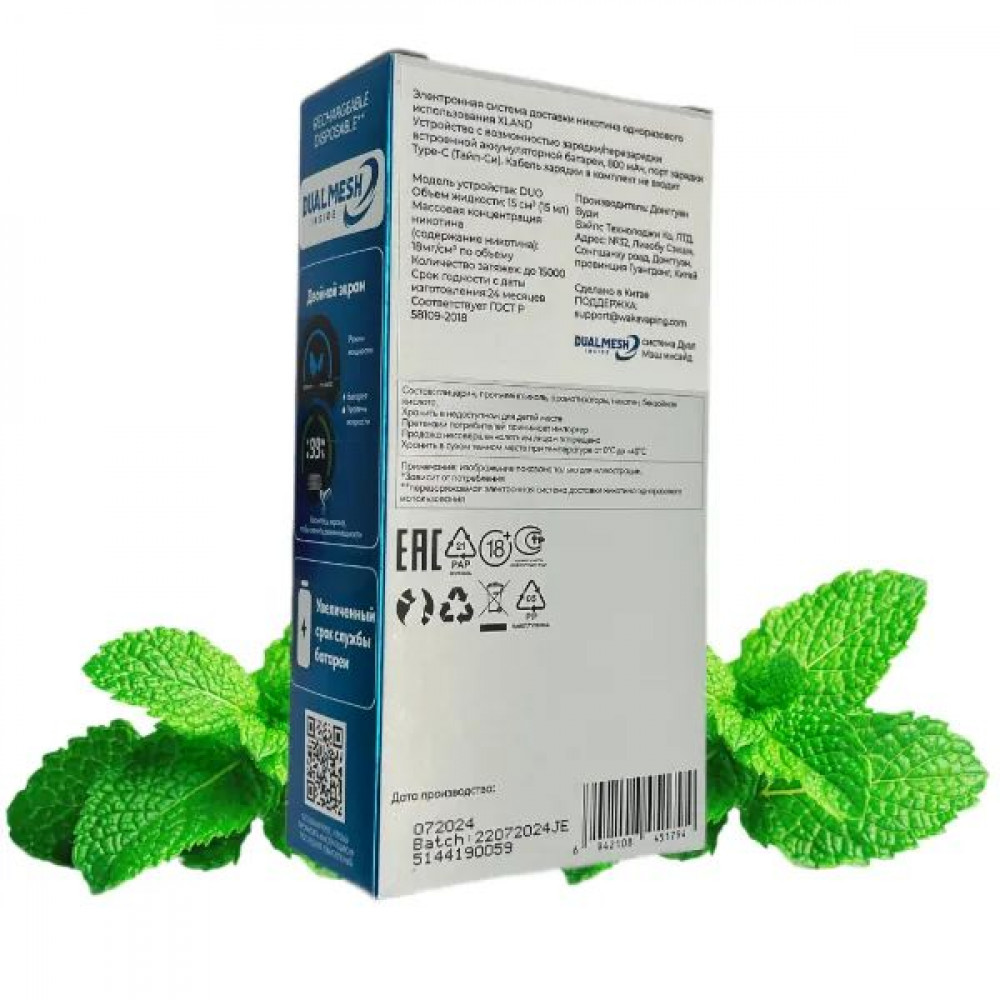 Технические характеристики WAKA XLAND 15000 - Мята